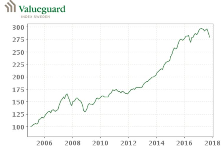 I september och oktober föll bostadspriserna i hela landet enligt Valueguards index. I Stockholm talar mäklare om ett prisfall på 10–15 procent bara de senaste månaderna. Det är ett dramatiskt trendbrott efter flera år av snabbt stigande priser och ökat bostadsbyggande.
