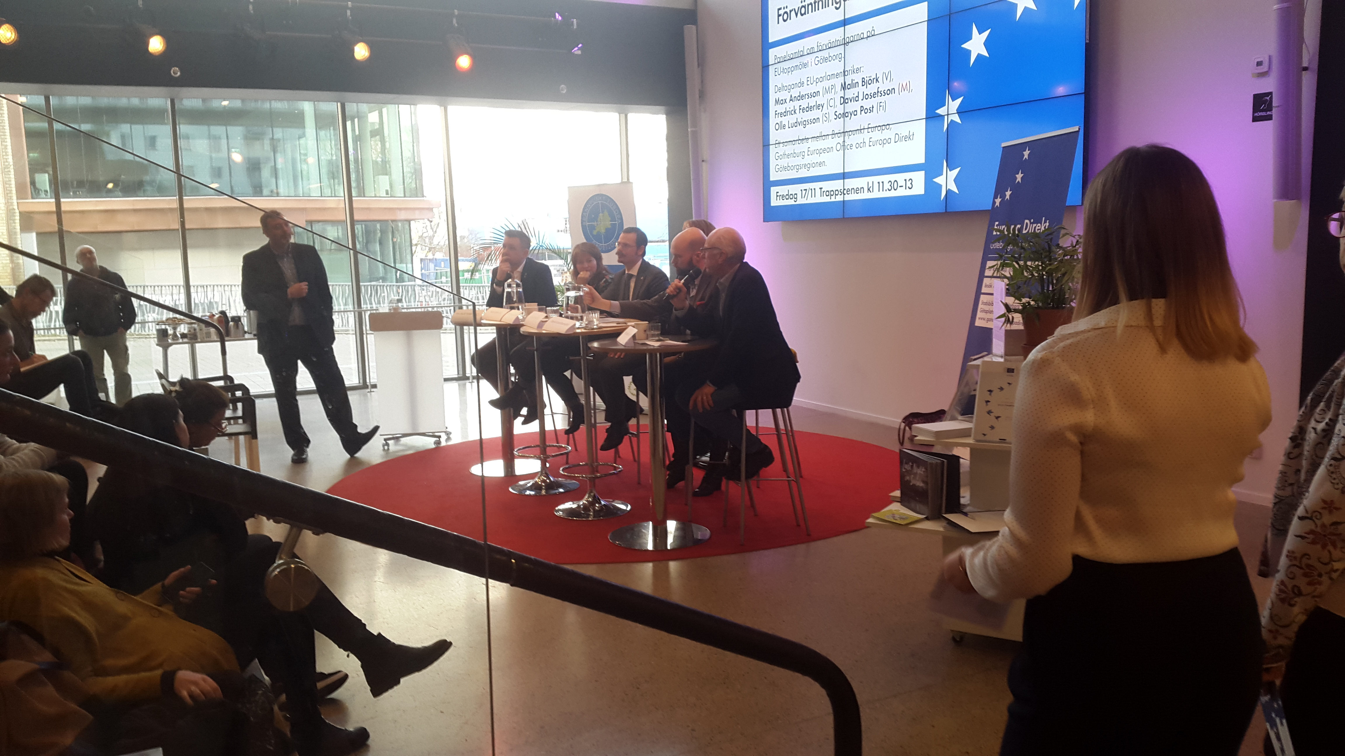 Debatten arrangeras av Brännpunkt Europa, en studentorganisation vid Göteborgs universtitet. I debatten deltar Feministiskt initiativ (FI) och samtliga riksdagspartier förutom Kristdemokraterna och Liberalerna, som inte hade möjlighet att närvara, samt Sverigedemokraterna som inte svarade på inbjudan. Panelen har lockat mycket folk och vid trappscenen på Göteborgs stadsbibliotek är det fullsatt.