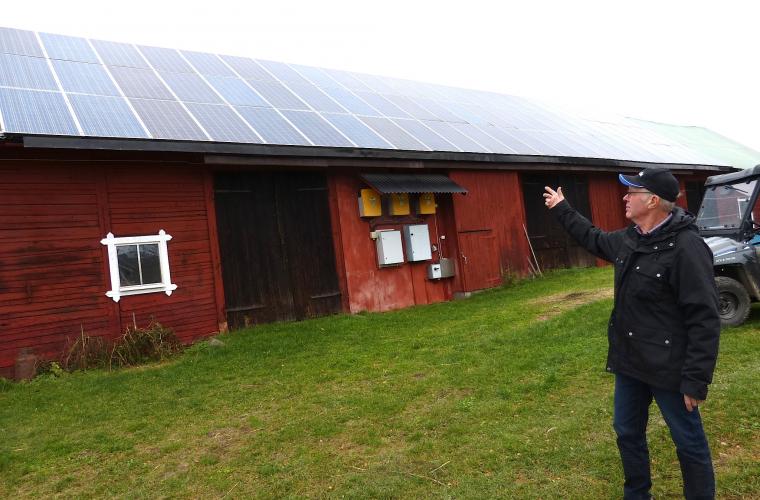 På en lada finns solpaneler som räcker till lantbrukets elförsörjning.