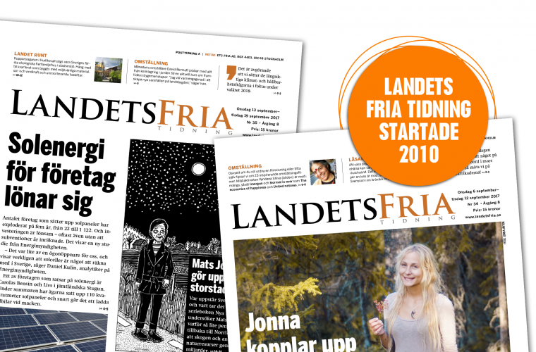 Under flera år har vi tillsammans med er läsare och engagerade omställare runt om i landet berättat om hur lokala initiativ och engagemang kan leda till en mer hållbar värld. Vi har granskat politik och makthavare utifrån ett landsbygdsperspektiv, där de flesta medier fokuserar på städerna. I dag kom det sista numret av papperstidningen. Merparten av Frias och ETC:s tidningar läggs ner vid årsskiftet – inklusive Landets Fria Tidning. De allra sista numren kommer ut digitalt.