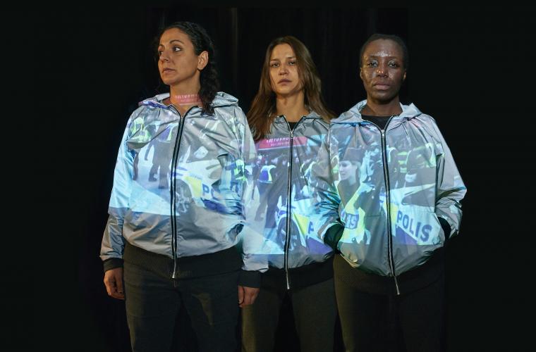 – Vi var tydliga med att vi inte ville göra en föreställning som handlar om att tillfredsställa det vita begäret av att känna sympati. Det vill säga att den vita blicken ska känna någon typ av närhet med personerna i Husby genom att det är ”synd om dem”. Utan vi ville göra det ur de boendes perspektiv, från personer som rasifieras blick. De som har erfarenhet av polisbrutalitet men också av politisk kamp.