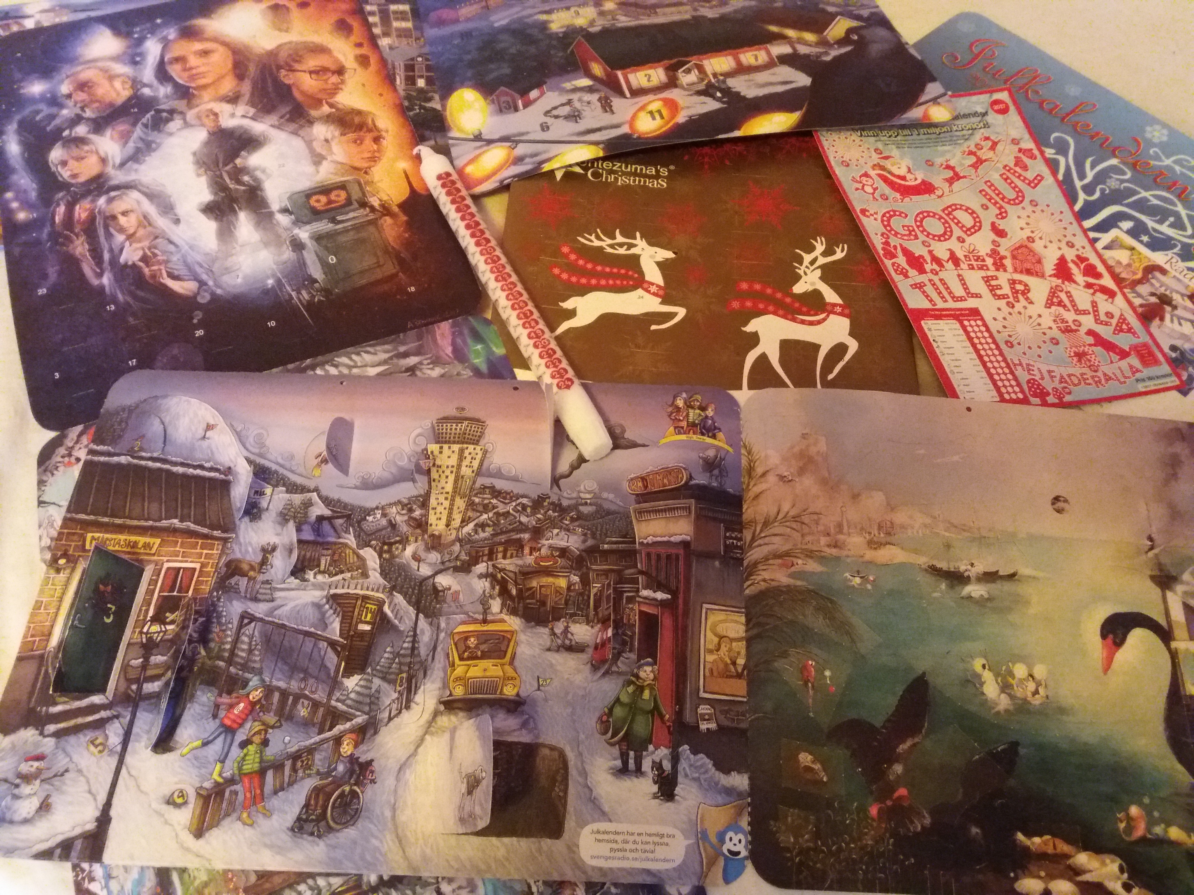 Men nu finns det också många andra sorters kalendrar. Bakom luckorna kan det finnas saker. Choklad-kalendrar är vanliga. Det finns också kalendrar med leksaker i. Och kalendrar för vuxna med schampo, smink eller andra saker.