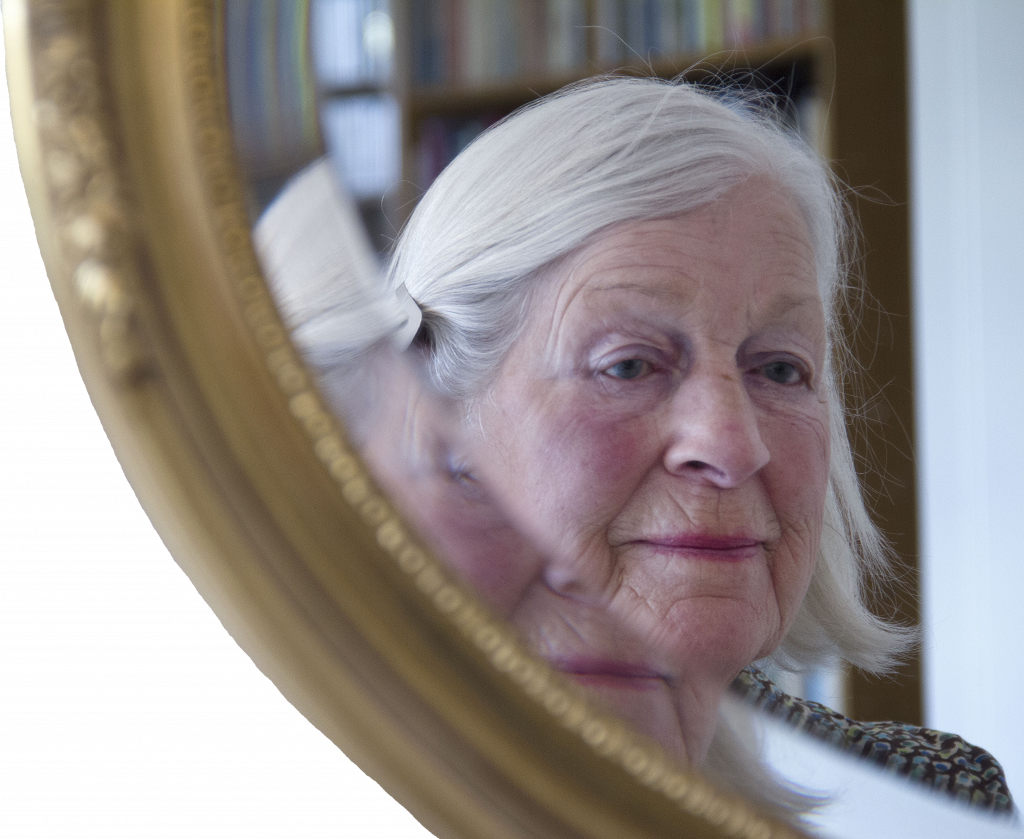 Ulla Holms hållning är stolt, händerna ligger knäppta på köksbordet och ögonen plirar ut i det soliga utanför fönstret. Hon är tacksam över att hon fortfarande är fysiskt stark och uthållig, men det kan vara tufft att stå i en och samma ställning en längre stund. Däremot har hon aldrig avbrutit en session. Visst var hon nervös första gången, nu för tiden tycker hon att det är spännande att ta av sig.