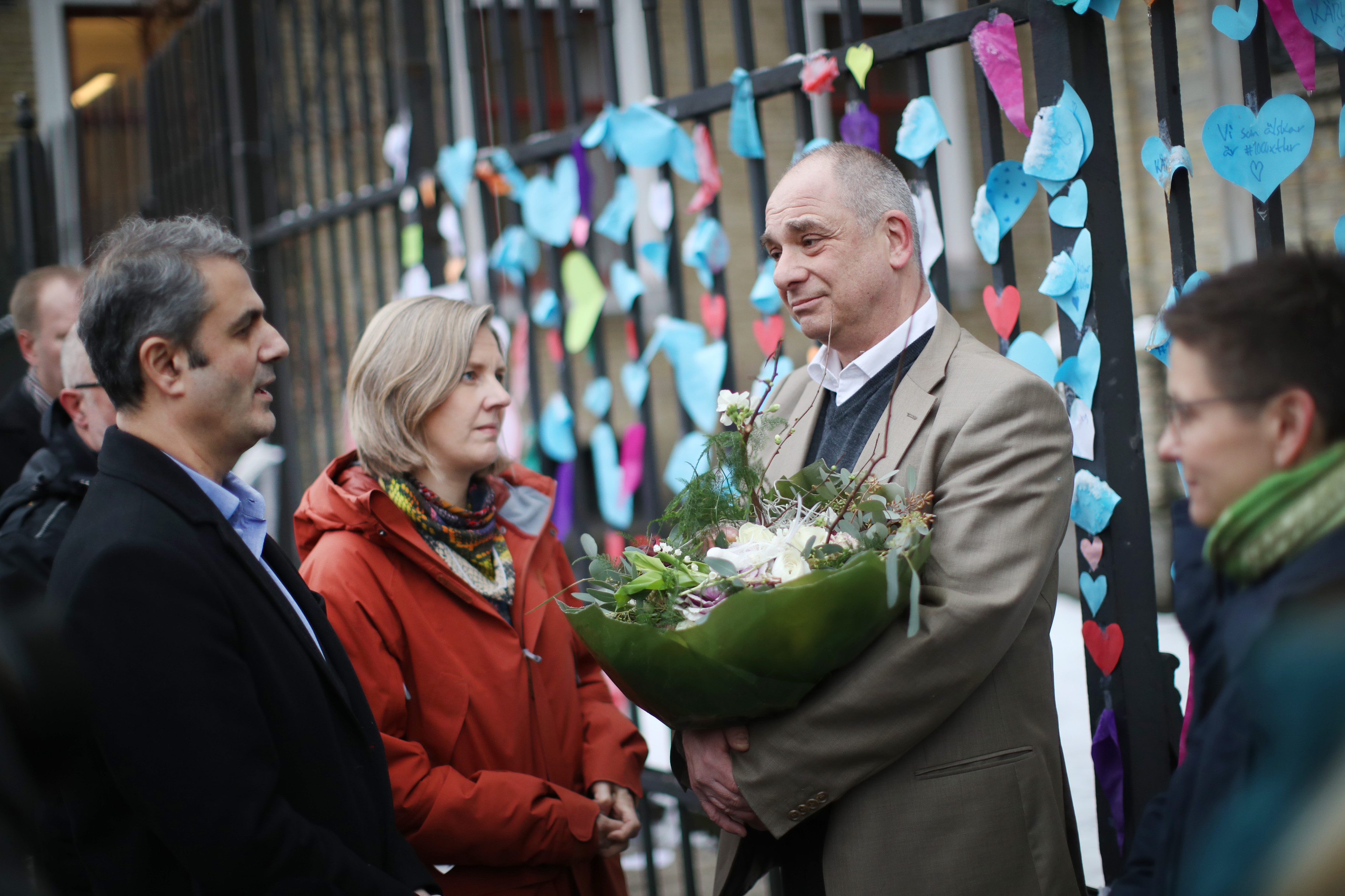 – Vi har fått oerhört mycket reaktioner, omtanke och stöd, säger Allan Stutzinsky. Synagogsgrindarna och framsidan av huset är kärleksbombade och tapetserade med hjärtan, och många har hört av sig: politiker, religiösa grupper, som kristna och muslimska grupper och andra judiska församlingar i Sverige och andra länder. Det känns väldigt bra att många reagerar så starkt och så snabbt – det känns som att vi är inte ensamma i alla fall.