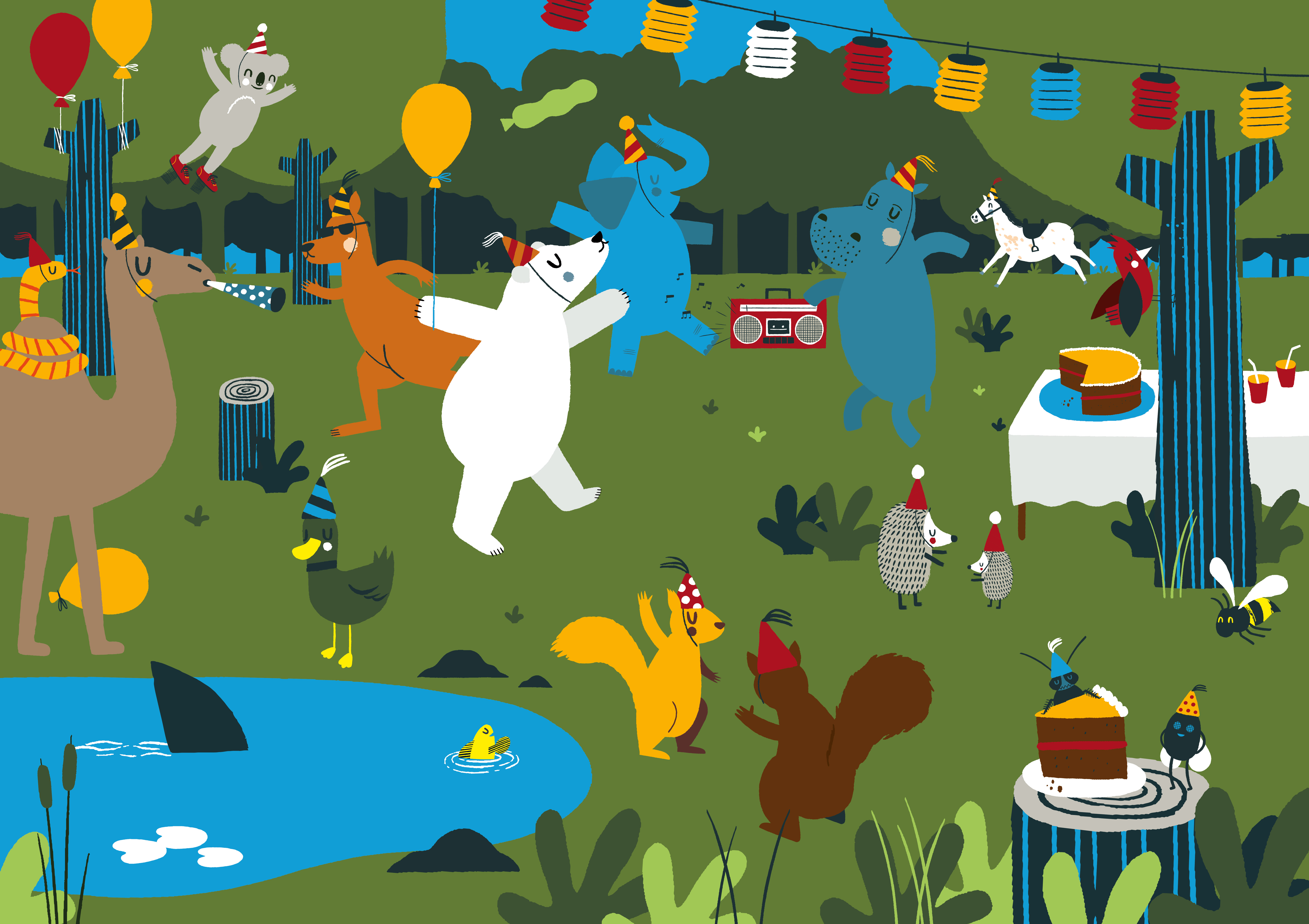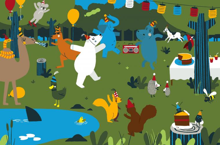 Näktergalen agerar ciceron och för oss runt jorden för att samla ihop olika djur till den stora skogsfesten i skogsgläntan. Näktergalen befriar flodhästen från zoo innan det är dags att flyga vidare till elefanterna, aporna, igelkottarna, koalorna och alla de andra djuren.
