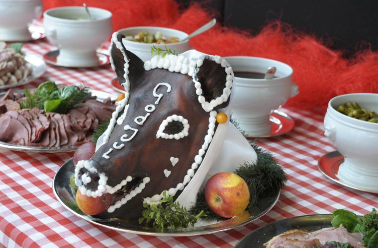 Vi dukar fram många olika sorters mat. Det kallas julbord. Flera saker är samma som man serverar till midsommar eller till påsk: kokt potatis, sill, prinskorv och köttbullar. Men vissa saker är speciella för julen. Till exempel julskinkan. Mycket julmat kommer ifrån grisen. Förr i tiden slaktade man en gris till jul. Av den kunde man göra många olika sorters mat: skinka, korvar, sylta och mycket mer.