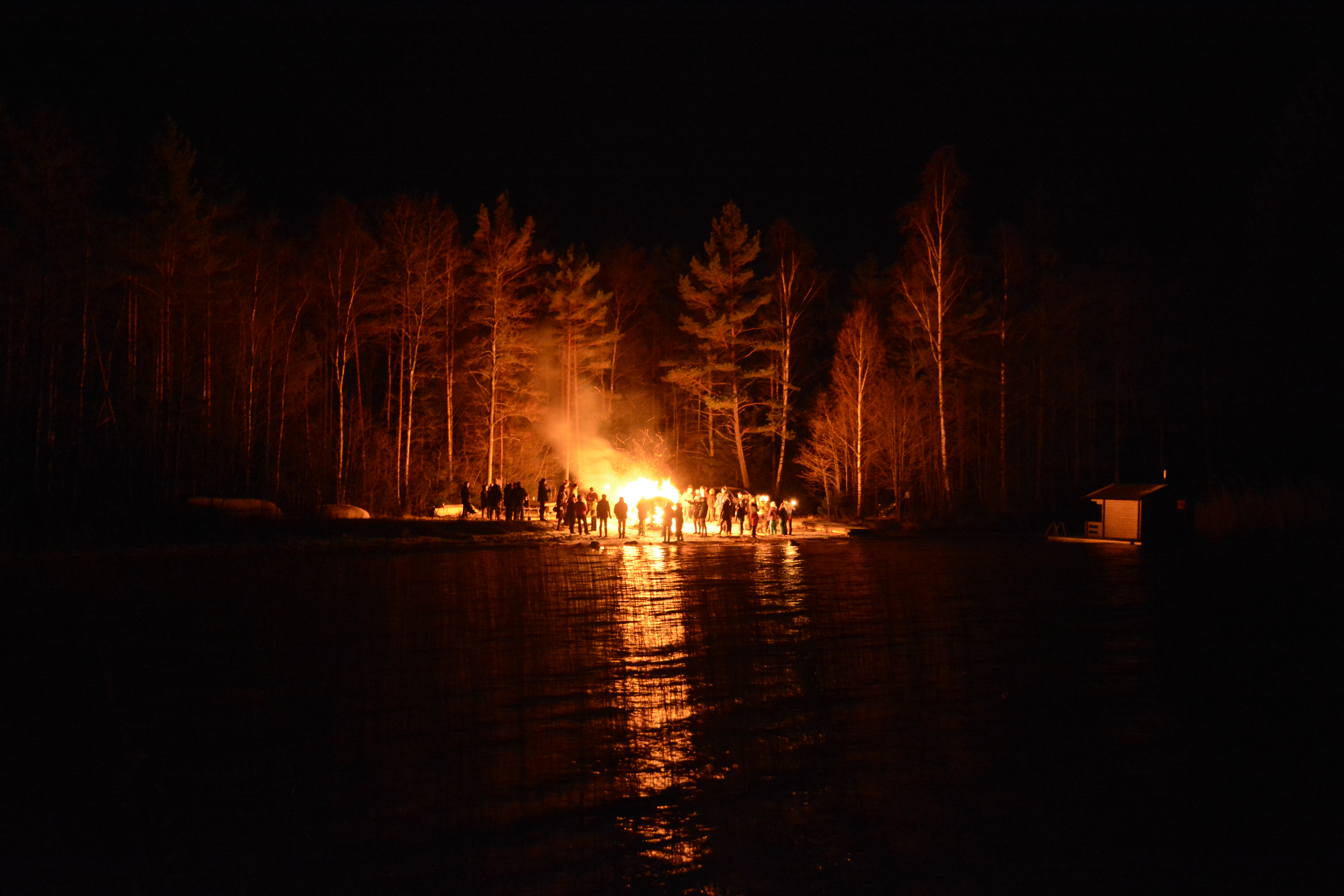 Under en kväll i november tände de boende brasor, så kallade vårdkasar som historiskt använts för att signalera fara, på 35 ställen runt om sjön.