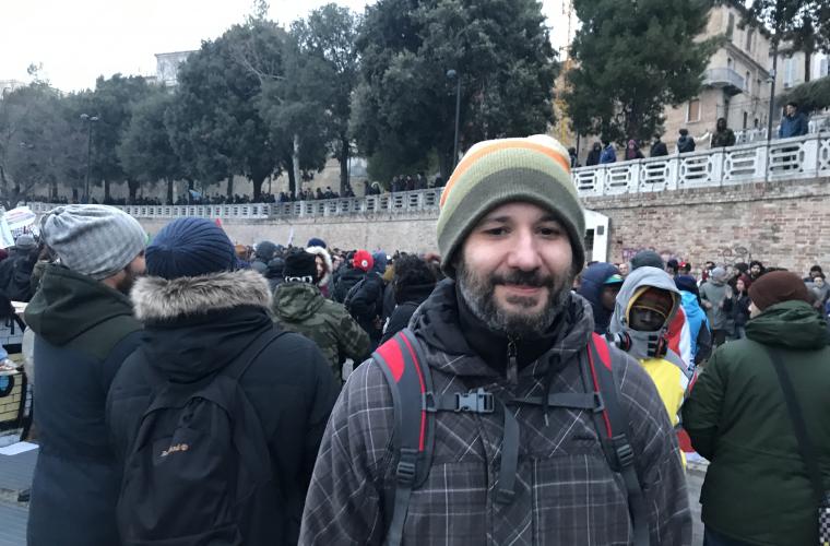 Han menar att många tidningar under veckan beskrivit staden som paralyserad och handlingsförlamad. Men under lördagen deltog många invånare från Macerata i demonstrationen.