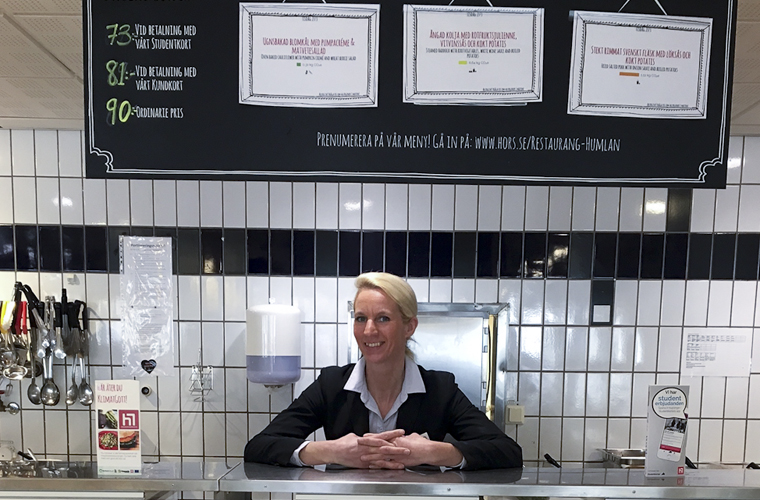 – De gröna rätterna är de som orsakar minst utsläpp. Det är främst veganska rätter, men kan även vara fisk eller kyckling. Rött är framför allt nötkött, men även vegetariska rätter med mejeriprodukter står för en del utsläpp, säger Marlene Brolin som är enhetschef för Hörs i Uppsala.