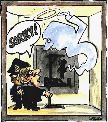 Fria.Nu Dödsstraff Publicerad: tisdag 6 april 2004, 8:20 • Uppdaterad: måndag 9 september 2013, 12:49 Vår tecknares kommentar i debatten om dödsstraff. Jan Stjernkvist