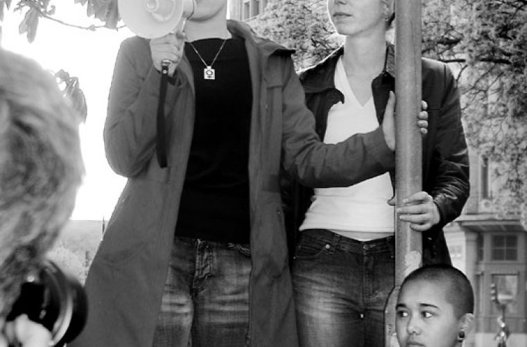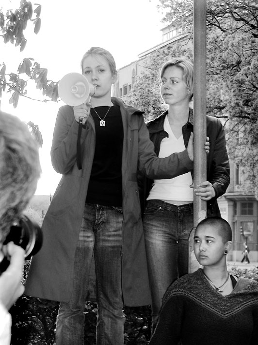 Bland demonstranterna fanns riksdagsledamöter, Riksorganisationen för kvinnojourer och tjejjourer i Sverige, Roks, och social-
