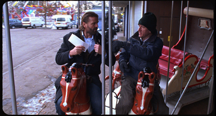 Direktören för det hele är en situationskomedi, varken mer eller mindre. Då och då kommenterar von Trier handlingen och gör klart att det vi ser är en banal komedi utan någon djupare mening. Jag påminns om Stig Larssons poesiprojekt för några år sedan, när han försökte skriva sig ut ur litteraturen. I en dikt upprepar han om och om igen att det här är en dålig dikt, men hur många gånger han än säger det så blir dikten ändå inte bra.