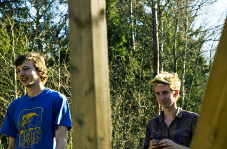 På husets baksida ansvarar Hanna Jagare för konstruktionen av en byggställning. Hon berättar att verksamheten i huset förhoppningsvis kommer att kunna börja redan i vinter. Åtminstone skulle stödfester kunna hållas. De skulle behövas. Att bygga hus kostar pengar, trots ideella insatser.