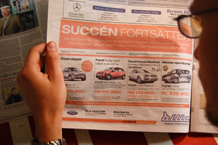 • Miljöfakta i bilannonser skrivs konsekvent i finstilt text, om den finns med alls vill säga.