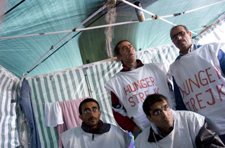 Yilmas Keles är mager och ser trött ut. Tillsammans med tre kamrater har han i 15 dagar hungerstrejkat på Sergels torg i Stockholm. Han hungerstrejkar för rätten till asyl. Och för rätten att leva, säger han.Yilmas Keles kom till Sverige från Turkiet år 2005. Då hade han nyligen blivit utsläppt efter ett år i fängelse. Man sa att han hade samarbetat med kommunistiska TKPML, som är en förbjuden organisation.När han talar om tiden i fängelse sänker han rösten.– De har torterat oss. De har slagit spikar i mina fötter och använt andra metoder. Det är så de gör.Sedan han kom till Sverige har Migrationsverket, Migrationsdomstolen och Migrationsöverdomstolen sagt nej till att ge honom asyl. Om Högsta domstolen tar upp hans fall kan han få stanna. Annars blir han avvisad.