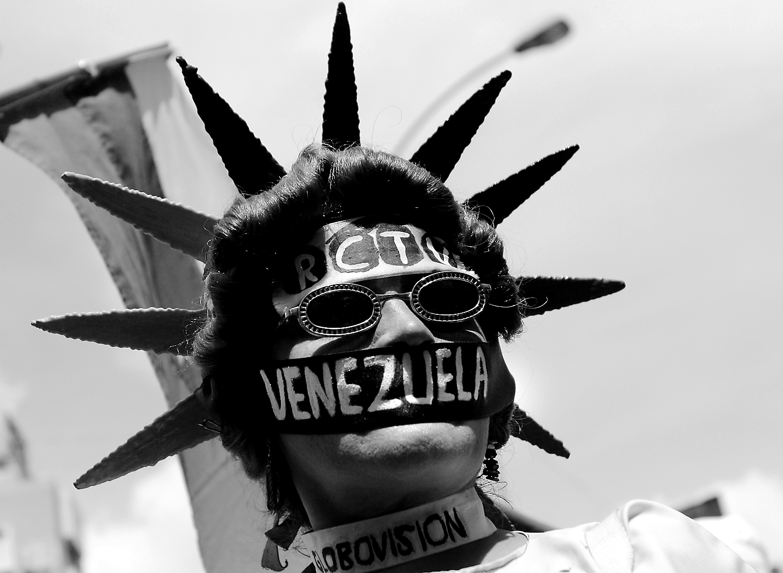 • *** Local Caption *** @Normal: deltar en person i demonstrationen som hölls i Caracas den 19 maj föranledd av president Chávez beslut att inte förlänga RCTV:s sändningstillstånd.
