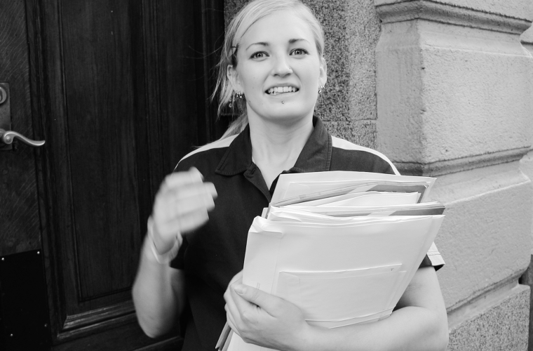 Therese delar ut över 400 kilo reklam på fredagar