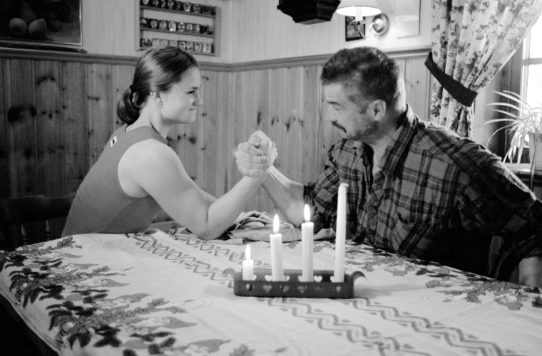 Rader av män som är minst dubbelt så stora som Heidi får hon på fall. Men bakom hennes framgång ligger mycket mångsidig träning. För att kunna konkurrera med ryskorna, vilka hon ser som de svåraste motståndarna, har hon byggt ett 'ryssgym', ett ställningsbygge ämnat åt klättring. Uppfriskande är även att en ung kvinna som inte har problem på ett eller annat sätt är i fokus. Armbryterskan från Ensamheten fokuserar på gemenskapen i byn, speciellt på relationen mellan far och dotter. Det är en peppande film som sprider budskapet: med viljestyrka och hängivenhet klarar du allt.