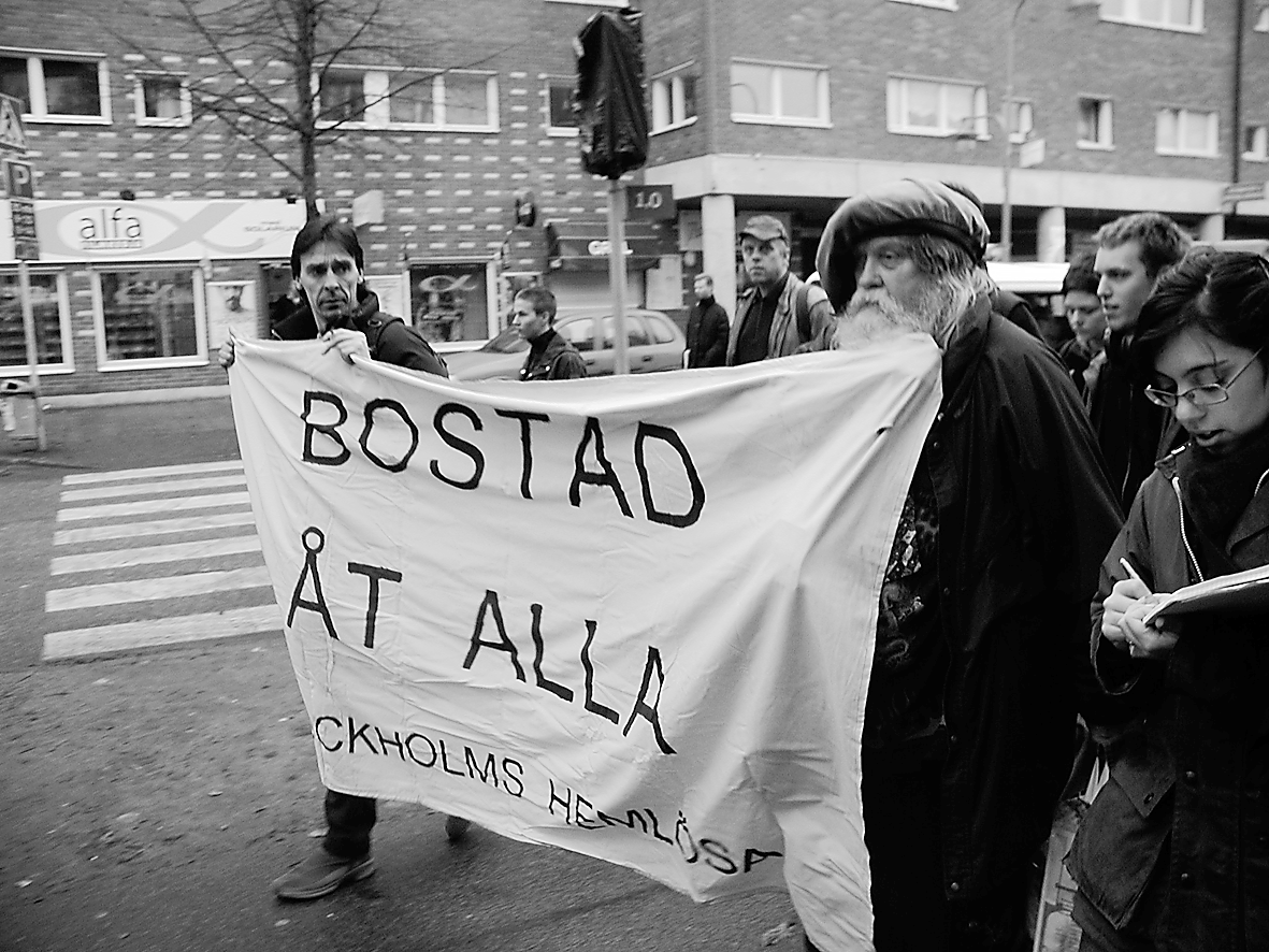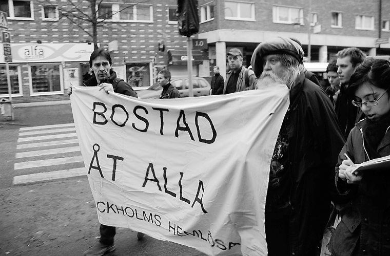 'Sluta jaga hemlösa' lät det under det demonstrationståg som föreningen Stockholm hem-lösa arrangerade i onsdags. Ett 20-tal slöt upp för att ta ställning mot beslutet att tvinga bort de hemlösa från campingplatsen vid Ältasjön.