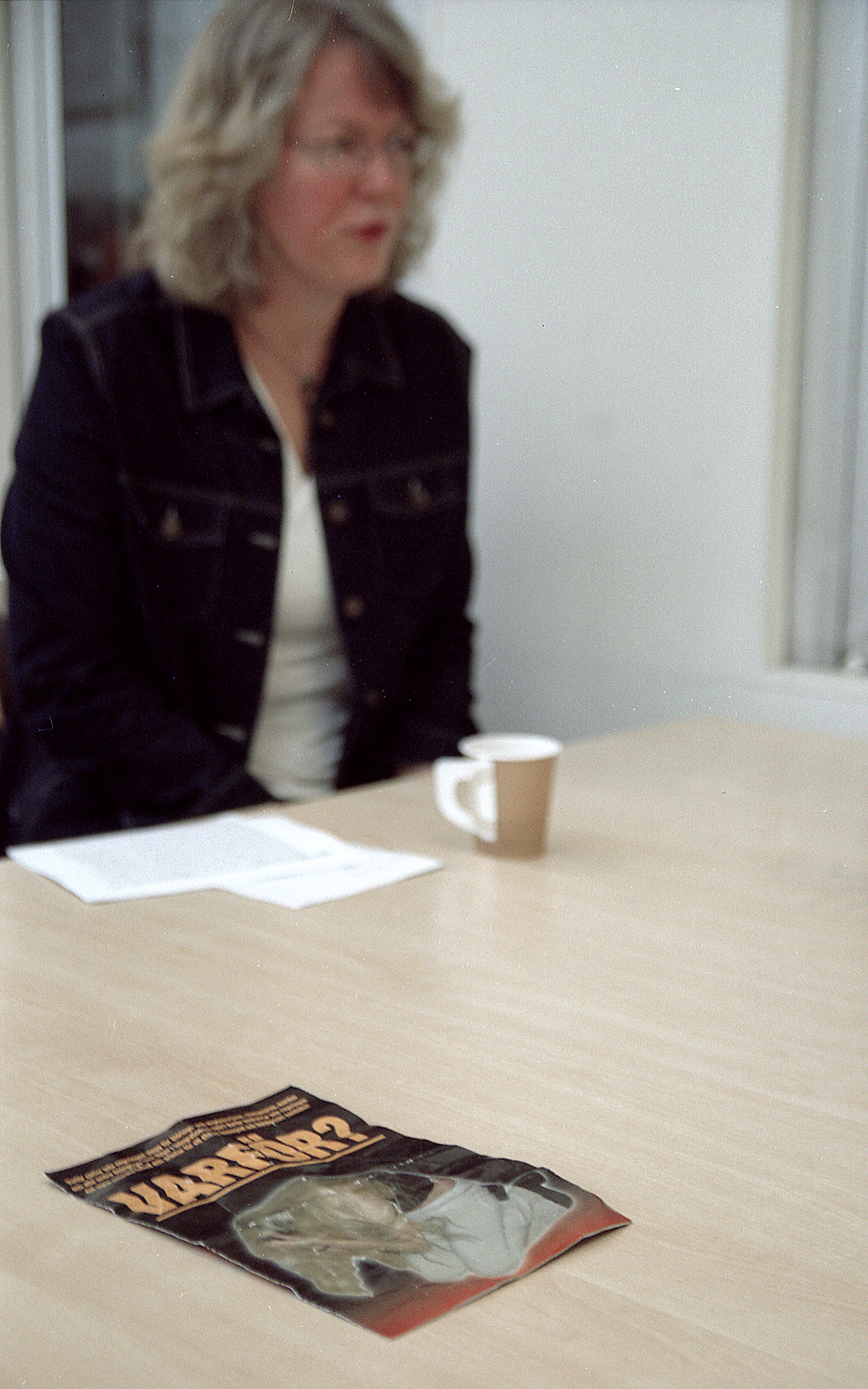 Ett flygblad från organisationen Salemfonden pryds av en blond kvinna som sitter ihopkrupen med huvudet i händerna. Över henne lyser ordet Varför följt av ett frågetecken.