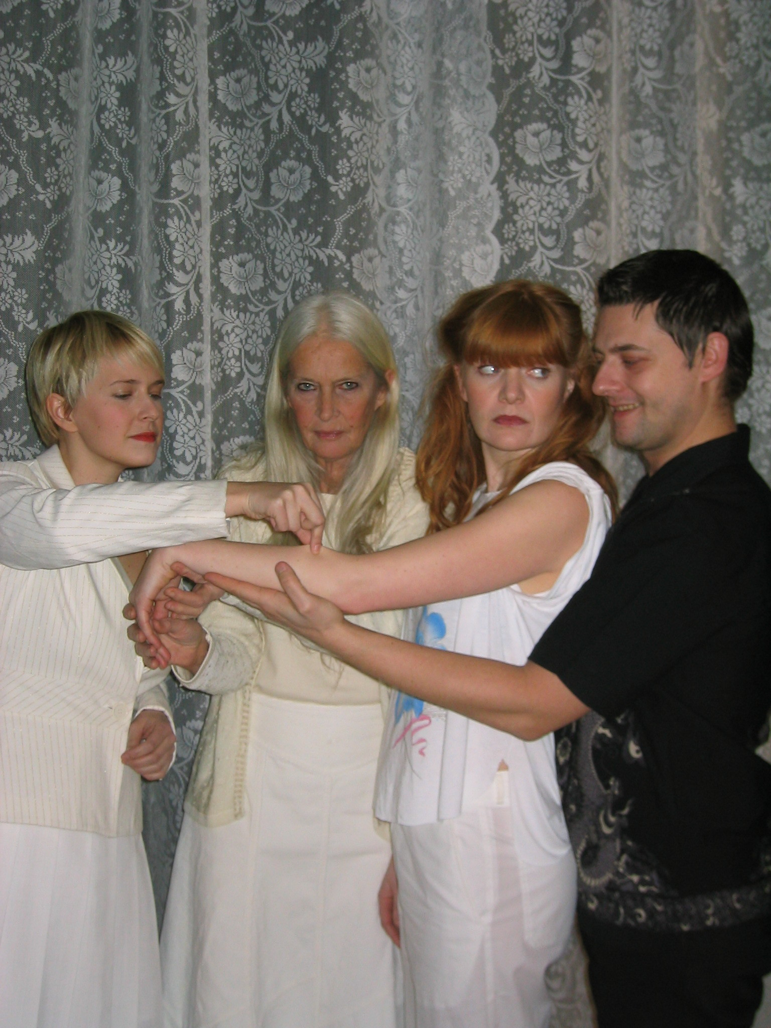 Det är lätt att ta allt på allvar i början, tro att de sorgsna balladerna på engelska som aktörerna ständigt brister ut i verkligen är tänkta att fylla åskådarnas hjärtan med smärta. På musikal-vis växlar sångerna med korta spelscener med dans, rörelse och dialoger som antyder en ganska olycklig kärlekshistoria. Där finns tre vitklädda kvinnor i olika åldrar, kanske tre upplagor av samma kvinna, och så en man att älska.