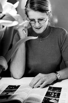 Hon bläddrar entusiastiskt i programmet och fastnar för den tyska filmen De feta åren är förbi som ingår i Fighting the system, ett tema med ganska bitsk samhällskritik.