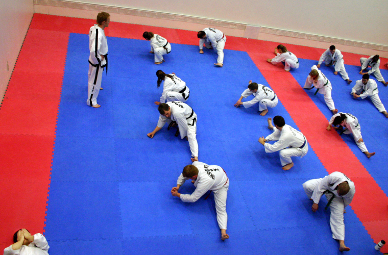 TAEKWONDO. Robert Andersson leder ett träningspass för gröna bälten och uppåt. Lokalen är full av vita dräkter. Den i Sverige unga sporten har nu nått en mognad, och börjar likna en ny folksport.