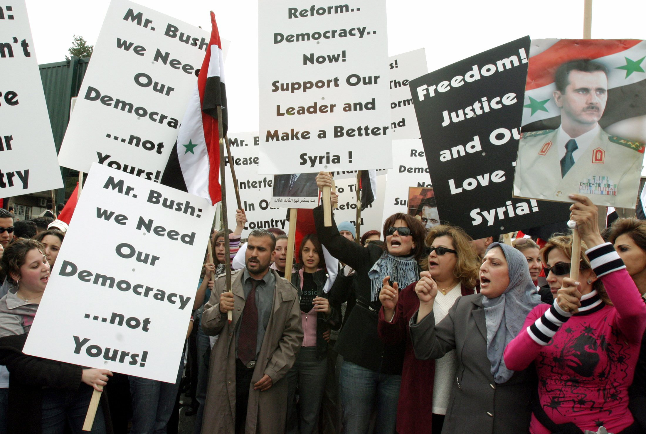 Bush har uppmanat Syrien att dra sig ur Libanon - men det är ett krav som redan hade rests av Frankrike och som senare återupprepades av Saudiarabien. Och vad gäller regimskifte i Syrien och Iran så säger initierade källor att Bush inte är engagerad i det för närvarande