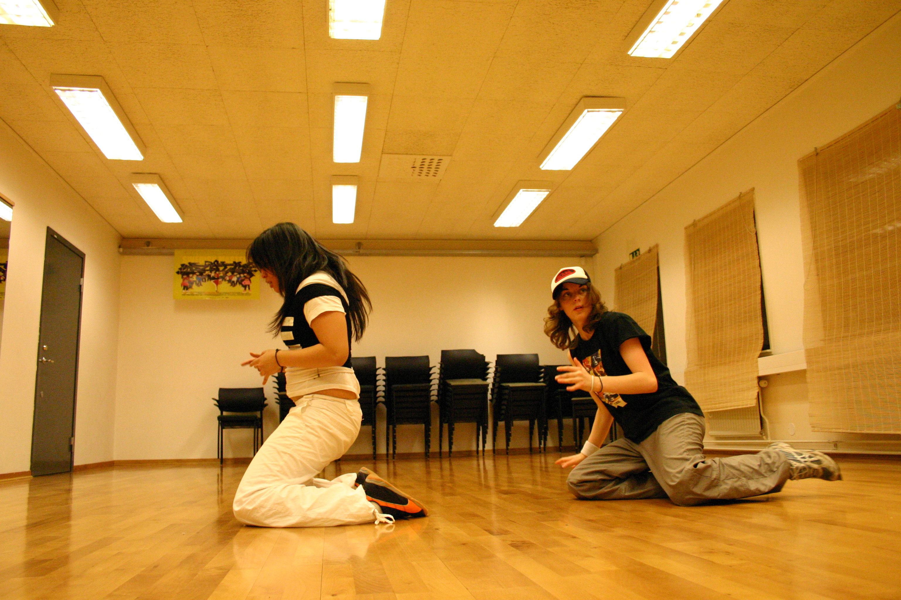 Genom ett angränsande rum, en korridor och in genom en dörr håller Edwina Molina och Cecilia Månsson ur dansgruppen Reloaded på att värma upp inför ett danspass. De hukar för ett intro av kulspruteknatter som strömmar ur högtalarna, när beatsen bryter in börjar de dansa synkat och kraftfullt.