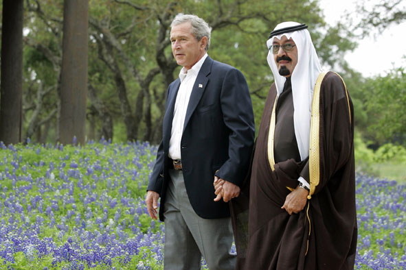 I måndags besökte Saudiarabiens kronprins Abdullah USAs president George W Bush på dennes ranch i Crawford, Texas. I ett gemensamt uttalande efter mötet ger Bush sitt stöd till Saudiarabiens plan att öka produktionen av olja, och Saudiarabien hyllar USA i dess kamp mot kolonialism och imperialism.