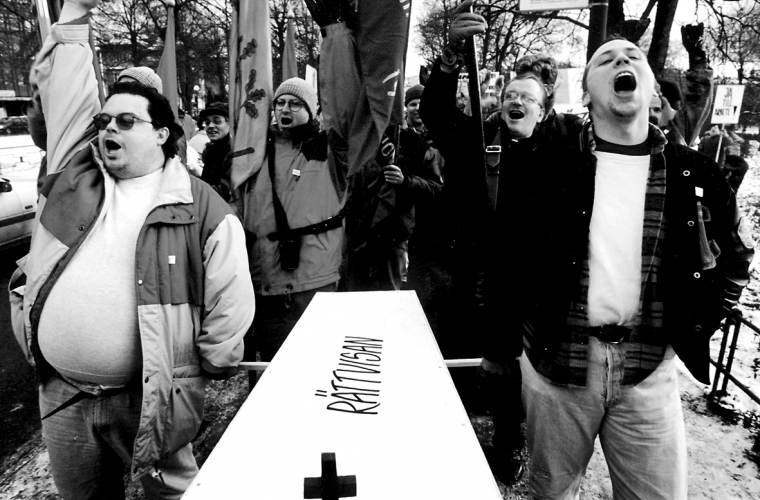 • 30 000 deltog i LO-TCOs demonstration mot regeringens politik 1993. Något liknande har vi inte sett efter valet 1994.