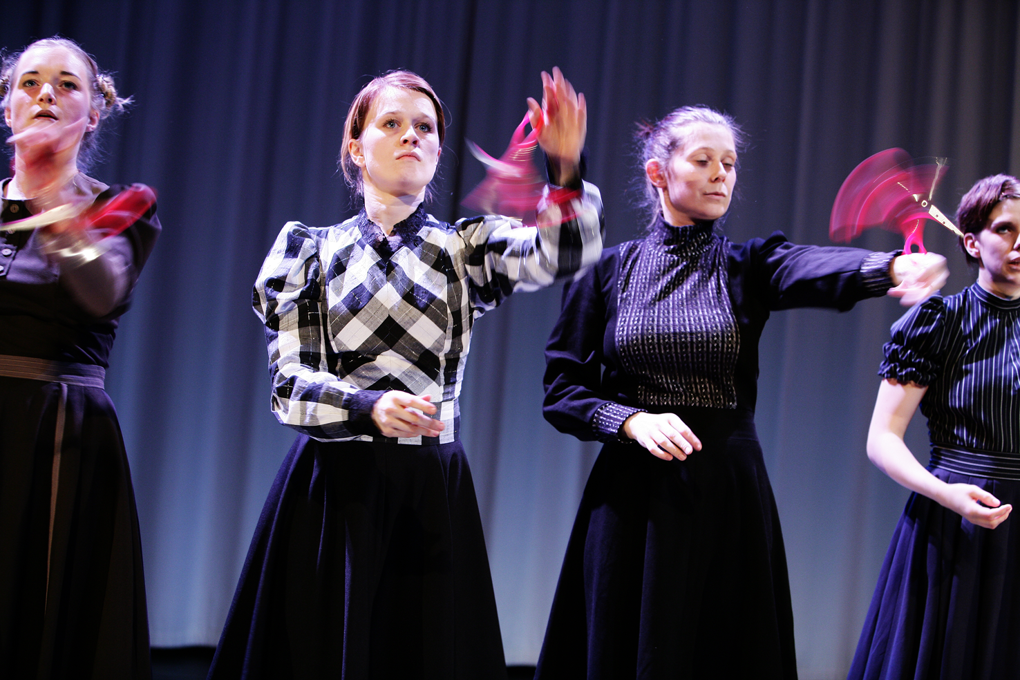 - Utgångsläget var att gruppen hade spelat män i tidigare föreställningar. Och så hade vi en känsla efter senaste föreställningen - nu måste vi på något sätt gå vidare, säger finländska Sonja Ahlfors, som utgör en åttondedel av subfrau.