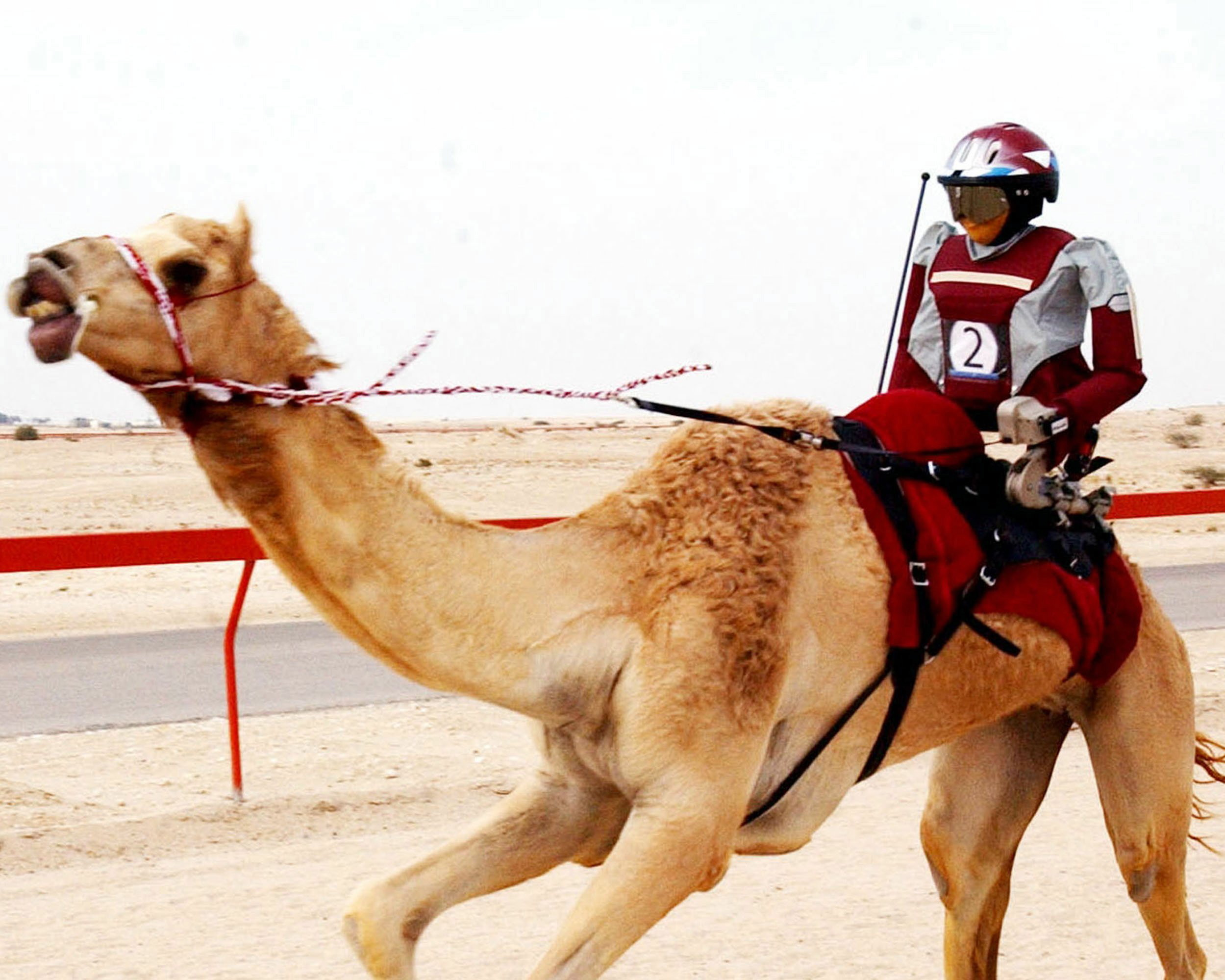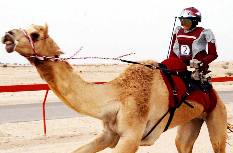 Kamelkapplöpning Kamelkapplöpningar är mycket populärt i länderna kring Persiska viken. Det är en fördel om jockeyn väger så lite som möjligt vilket har lett till allt yngre kamelförare. Barn från fattiga länder, ner till 4 års ålder, utnyttjas ofta som jockeyer.