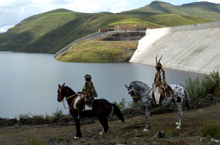 • Vad händer om jordens vattentillgångar privatiseras? frågar sig skribenten. Bilden är från öppningsceremonin för ett dammbygge vid Mohale i Lesotho.