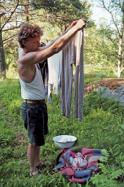 Medan vi åtta kvinnor i varierande ålder drack ljummet vatten (ur de där vita muggarna som även används till urinprov) berättade barnmorskan att vi nu skulle bli tröttare. Vi skulle kanske inte kunna hålla samma standard hemma och karlarna skulle kanske behöva 'hjälpa till' mera. Kanske skulle det även bli aktuellt att be karln stå för middagen någon gång, om vi kände oss riktigt trötta vill säga.