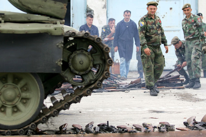 • Vapen förstörs i Bosnien. Antalet väpnade konflikter i världen har minskat med 40 procent sedan 1992, enligt en ny rapport från kanadensiska Human Sec