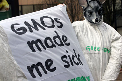 För att påminna myndigheter och allmänhet om riskerna arrangerade Greenpeace förra fredagen, den 2 december, en demonstration utanför ministermötet i Bryssel. Bland Greenpeace-aktivisterna fanns också tre svenskar, Sorella Tavares och Susanna Fuchs från Stockholm och Andreas Samuelsson från Lund. Utklädda till Monsantos råttor delade de ut flygblad vid banderollerna 'Protect Europe from Genetically Modificated Organisms' och 'GMO made me sick'.