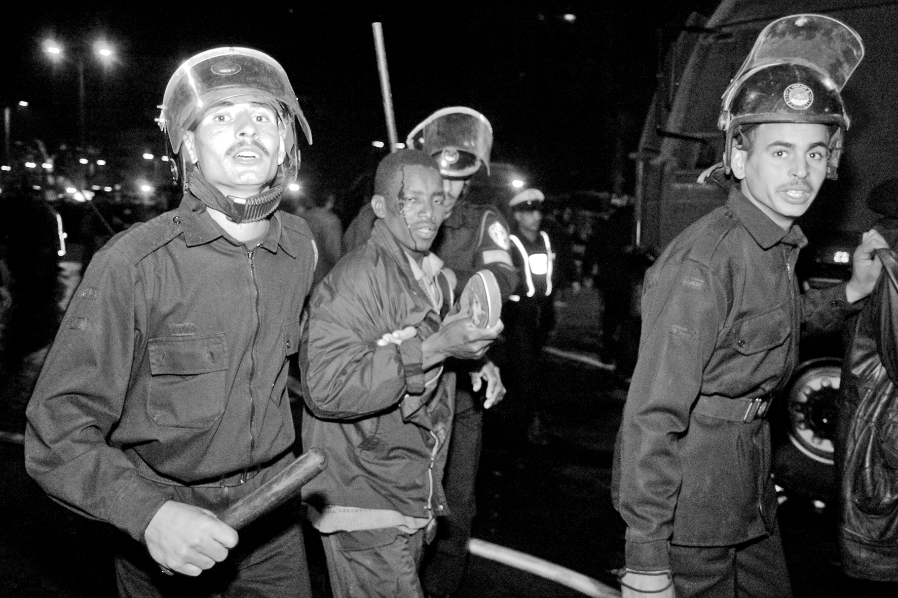 Men på fredagskvällen spärrade nära 4 000 egyptiska poliser av protestlägret och gick till attack med vattenkanoner, samt misshandlade människor urskillningslöst. Hundratals människor kastades in i bussar och skickades iväg mot okänd ort.