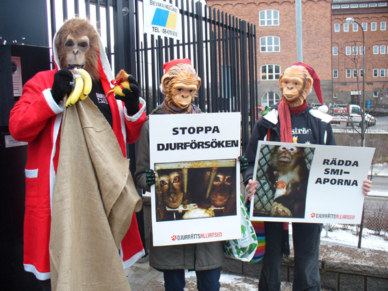 Djurrättsalliansen är en djurrättsgrupp med vanliga människor som arbetar ideellt, bland annat med att få SMI att upphöra med användandet av apor i djurförsök och för att de apor som redan finns där i dag ska rehabiliteras. Sedan 2003 är djurförsök på människoapor (schimpanser, dvärgschimpanser, gorillor, orangutanger) samt nio sorter av gibbonapor förbjudna i Sverige och vi arbetar även för att djurförsök med andra apor ska förbjudas.