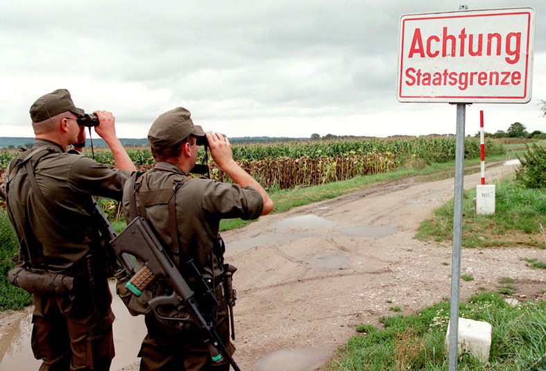 • ”Varning nationsgräns” står det på skylten vid den österrikiska gränsen mot Ungern.