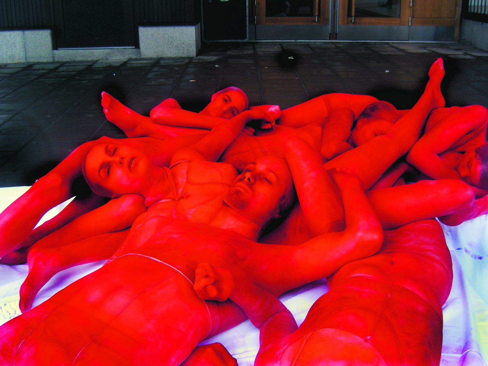 • Till synes klubbade, men uppenbart pälslösa, aktivister genomförde en liggande protest utanför Kanadas ambassad