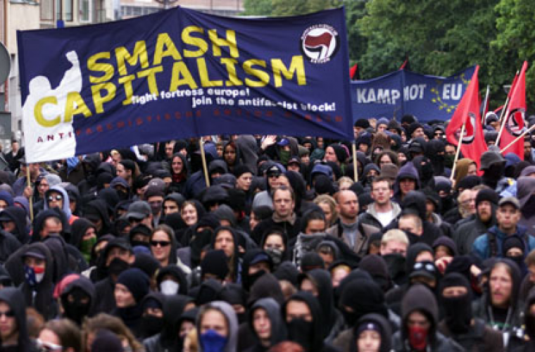 Antikapitalister mördades för mer än ett sekel sedan i Chicago av statens väktare. I dag möts fortfarande protester mot kapitalism av statens kulor, som i Göteborg år 2001. Men nu är det socialdemokraterna som håller pistolen mot våra huvuden.