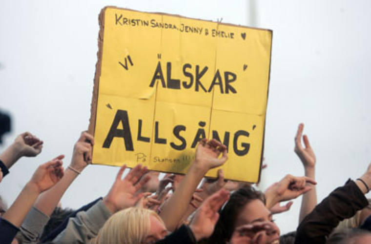 Allsångsledare under kvällen blir bland andra Miss universum, Kajsa Grytt, Maud Lindstöm, Helena Sandström och Pale Olofsson från Nationalteatern.