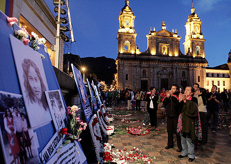 • Colombianer deltar i en minnescermoni för offren vid justitiepalatset 1985.