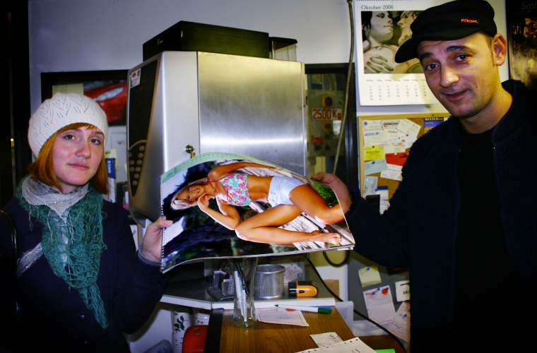 Stina Nilsson och Tova Eriksson i Göteborg går runt till företag och tittar om de har kalendrar med nakna kvinnor på väggarna. De har med sig en annan kalender, som de har gjort själva, och de frågar företagen om de vill byta ut sina nakenkalendrar. De vill väcka debatt om alla sexbilder som finns omkring oss.