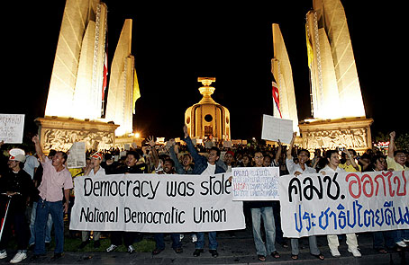 Thaksin, som för närvarande lever i exil i Peking, har sin väljarbas bland den fattiga befolkningen på landsbygden, som var den som gynnades mest av de reformer som genomfördes efter hans partis första valseger i januari 2001. Nu försöker den nya regimen på alla sätt att hålla Thaksin borta från Thailand och tysta de mediaröster som kritiserar kuppledarna och stödjer den förre premiärministern.