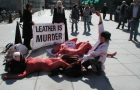 I går höll People for ethical treatment of animals, Peta, och Förbundet djurens rätt en aktion vid Medborgarplatsen i Stockholm. Förbipasserande fick se hur en aktivist utklädd till slaktare 'dödade' och 'flådde' en person utklädd till ko.