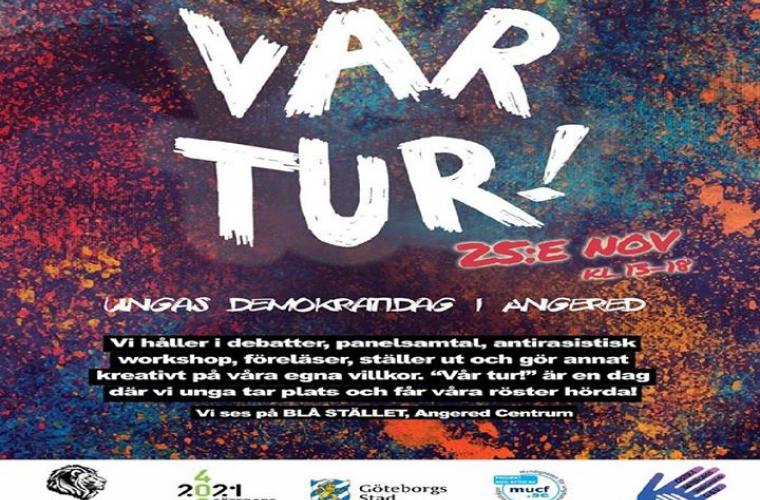 Vi unga från Angered och Östra Göteborg arrangerar en demokratidag i Angered Centrum där vi pratar öppet om makt, demokrati, inflytande och hur det är att vara ung i samhället. Vi kommer diskutera skolan, arbetsmarknad för unga, social mobilisering, vad behöver vi unga för att lyckas, trygghet och ungas engagemang i förening & fritid.
