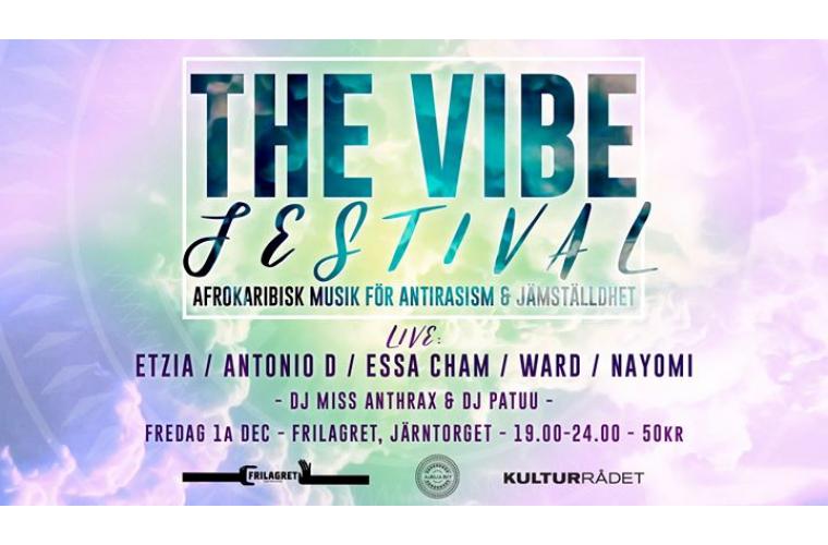 The Vibe Festival syftar till att synliggöra, lyfta och skapa scen för det afrokaribiska artistutbudet och genren i Sverige och är ett samarbete mellan Aurelia Dey och Frilagret. Festivalen har ett jämställdhets/antirasistiskt tema och syftar till att ge större bredd med mer utrymme för ickevita och ickemän/binära inom den afrokaribiska musikscenen. Host: Teysir Subhi. Live: Ward, Essa Cham, Antonio D, Nayomi, Etzia,